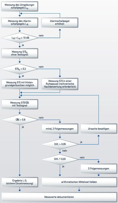 1 In der ersten Phase wird der Umgebungsschallpegel untersucht. Dabei muss erreicht werden, dass der Alarmschall/Nutzpegel 10 dB höher ist als der Umgebungsschallpegel. Erst dann kann die Sprachverständlichkeit gemessen werden.