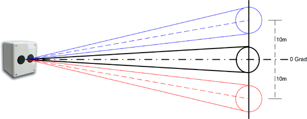 Bei einem gut ausgerichteten Sender darf der Senderkegel um bis zu 1° von der ursprünglichen Mittelachse wegdrehen, er trifft dann noch immer seinen Empfänger. Bei Drehbewegungen des Senders > 1° besteht die Gefahr, dass das Licht den Empfänger nur noch schwach oder gar nicht mehr trifft, mit der Folge einer ALARM- oder Störmeldung.
