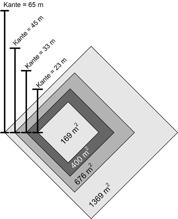 Klasse 2 Kante 20 m Diagonale = min. 33 m