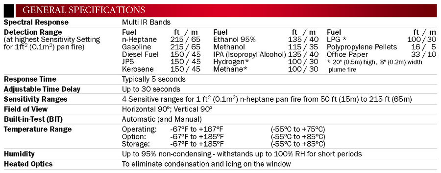 40/40 L (LB) UV: 0,185 µm bis 0,260 µm IR: 2,5 µm bis 3,0 µm Kohlenwasserstoffe, Wasserstoff, anorganische Stoffe, Metallbrände