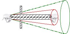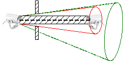 Der Sendekegel hat einen Öffnungswinkel von ca. 0,5° bis 2,6°, je nach Melder und Hersteller. Der Eingangswinkel am Empfänger beträgt ca. 4,5°.